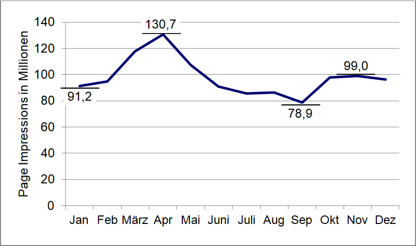 . Medizin- und Gesundheitsjournalismus . Statistische Daten zur Nutzung von Informationsangeboten im Internet (Page Impressions)